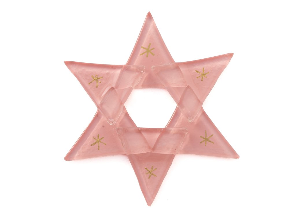 Oryginalna bożonarodzeniowa ozdoba ze szkła w kształcie gwiazdy w pastelowej czerwieni kolorze. Szklane ozdoby nadają się na drobny prezent. Szklane gwiazdy wykonywane są ręcznie, a każdy egzemplarz jest oryginalny. Szklane ozdoby dostarczane są w ozdobnym pudełku.