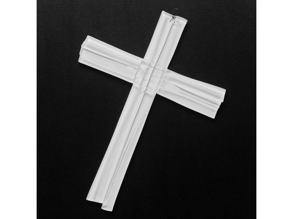 Krzyż posiada dyskretne mocowanie umożliwiające stabilne zawieszenie na ścianie.